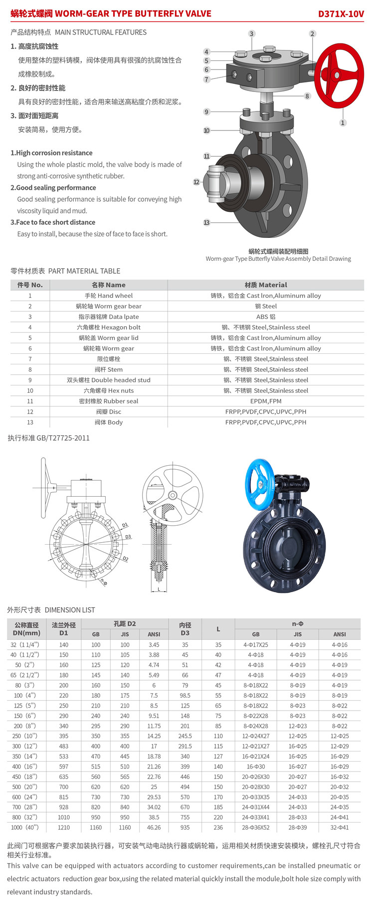 UPVC涡轮蝶阀A款