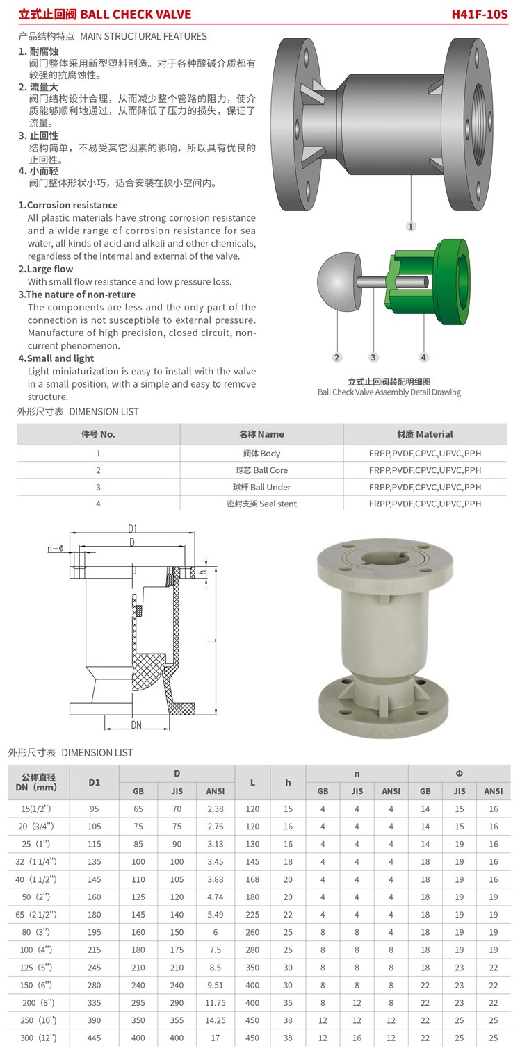 PPH塑料止回阀球芯式止回阀立式止回阀单向阀H41F-10S